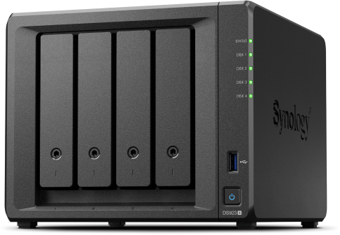 Synology 사의 NAS 제품인 DS923+는 중소규모 조직에 적합한 4베이 NAS로 높은 성능과 유연성을 자랑합니다. AMD Ryzen 프로세서가 탑재되어 있으며 최대 140TB 이상의 저장 용량을 확장(확장 유닛 사용)할 수 있습니다. 또한 10GbE 네트워크 업그레이드를 통해 향후 필요에 따라 성능을 강화할 수 있으며 DSM(DiskStation Manager) 운영체제는 직관적인 사용자 환경과 다양한 앱 지원을 제공하며 데이터 보호를 위한 RAID 옵션과 데이터 백업 솔루션도 포함되어 있습니다.