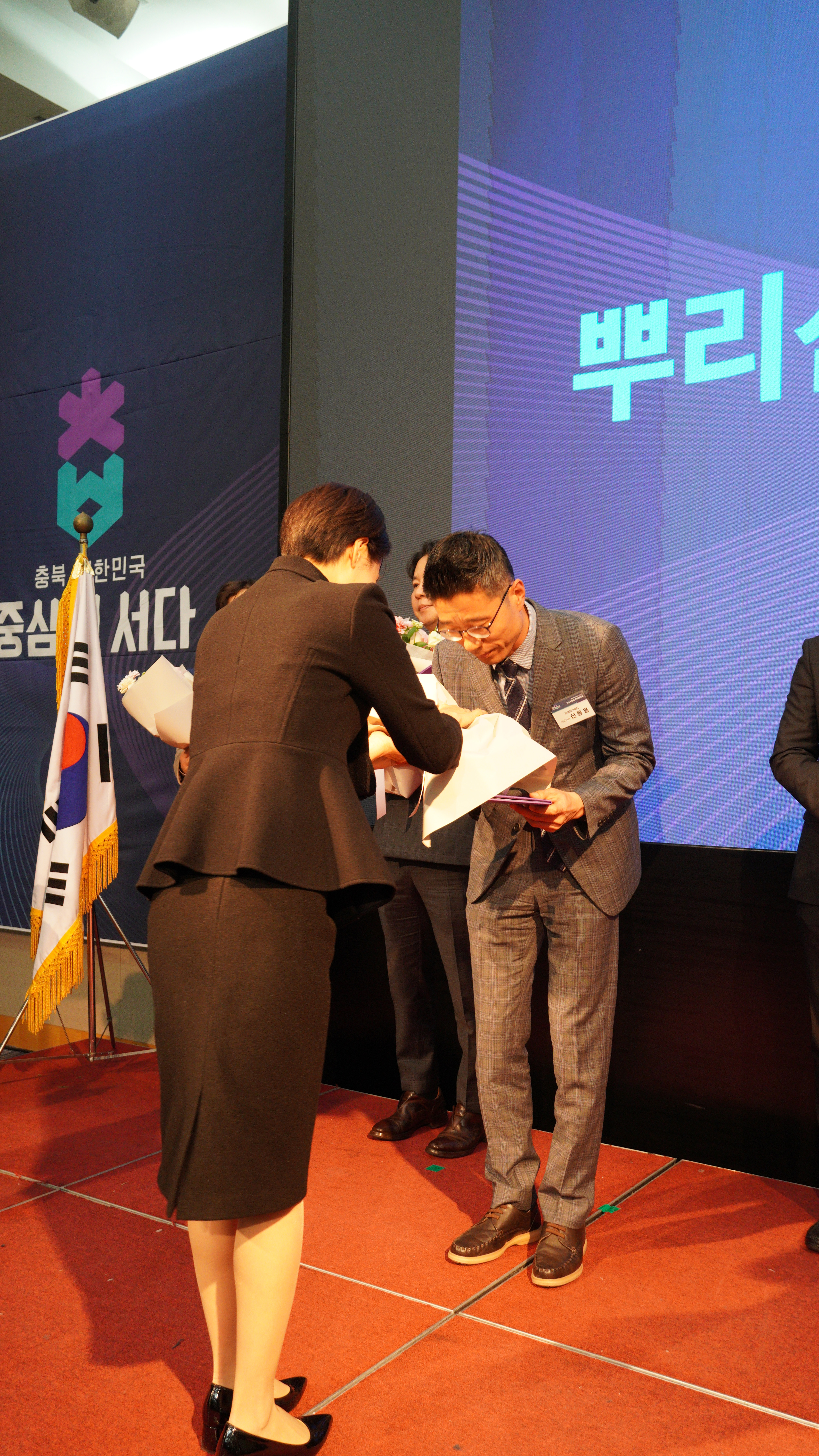이어진 2부 행사에서는 뿌리산업진흥 유공자에 대한 시상식이 진행되었습니다. 충북 뿌리산업 발전의 공로를 인정받아 코아아이티가 도지사 표창을 수상했습니다.