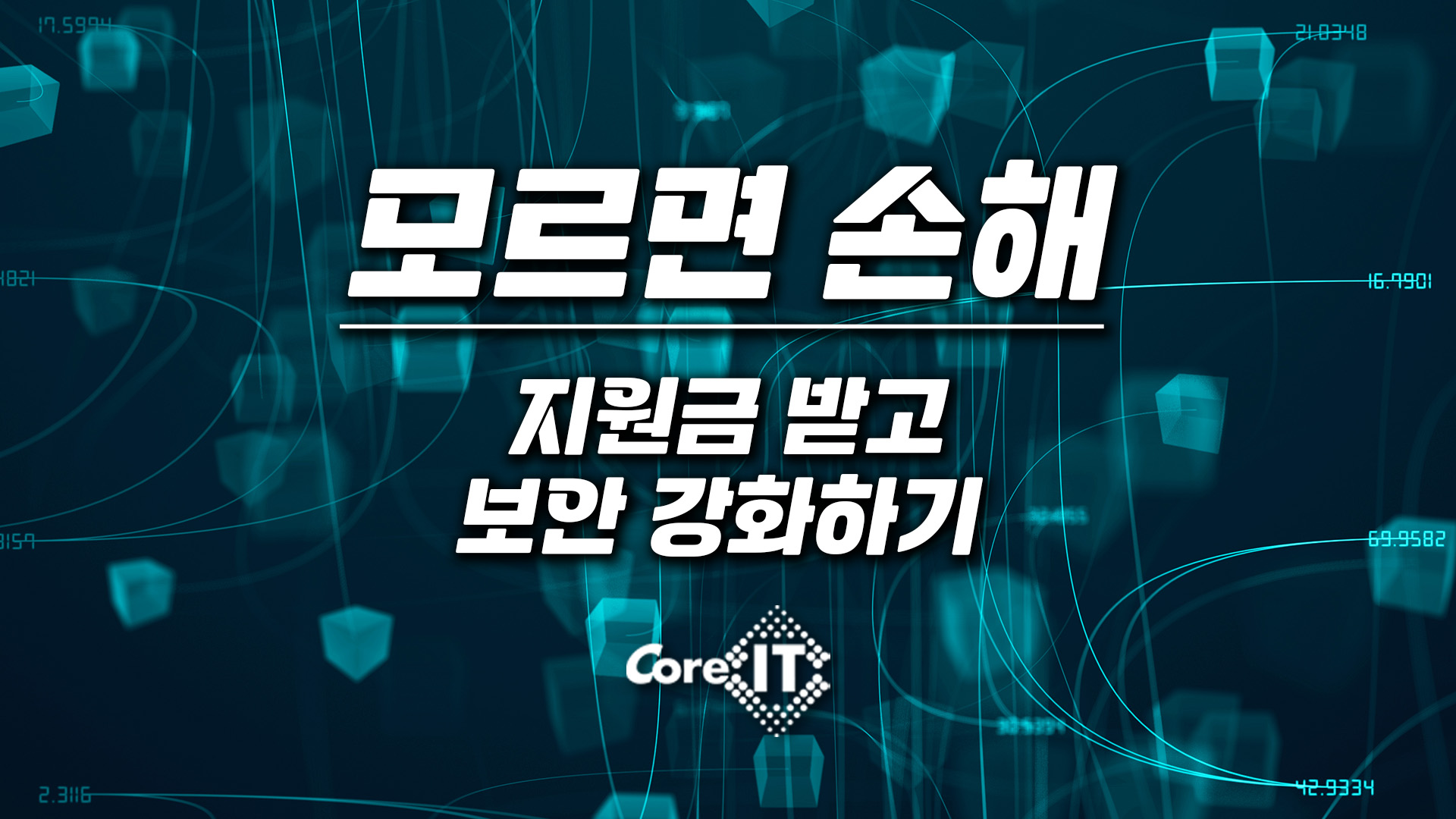 이런 지원 사업은 알고 있는 사람만 혜택을 받을 수 있는 기회입니다. 하지만 신청 과정이 복잡할 수도 있겠죠. 그래서 저희 코아아이티가 신청 절차와 기업 맞춤 보안 컨설팅, 솔루션 도입과 사후 관리까지 하나부터 열까지 원스톱으로 도와드립니다.