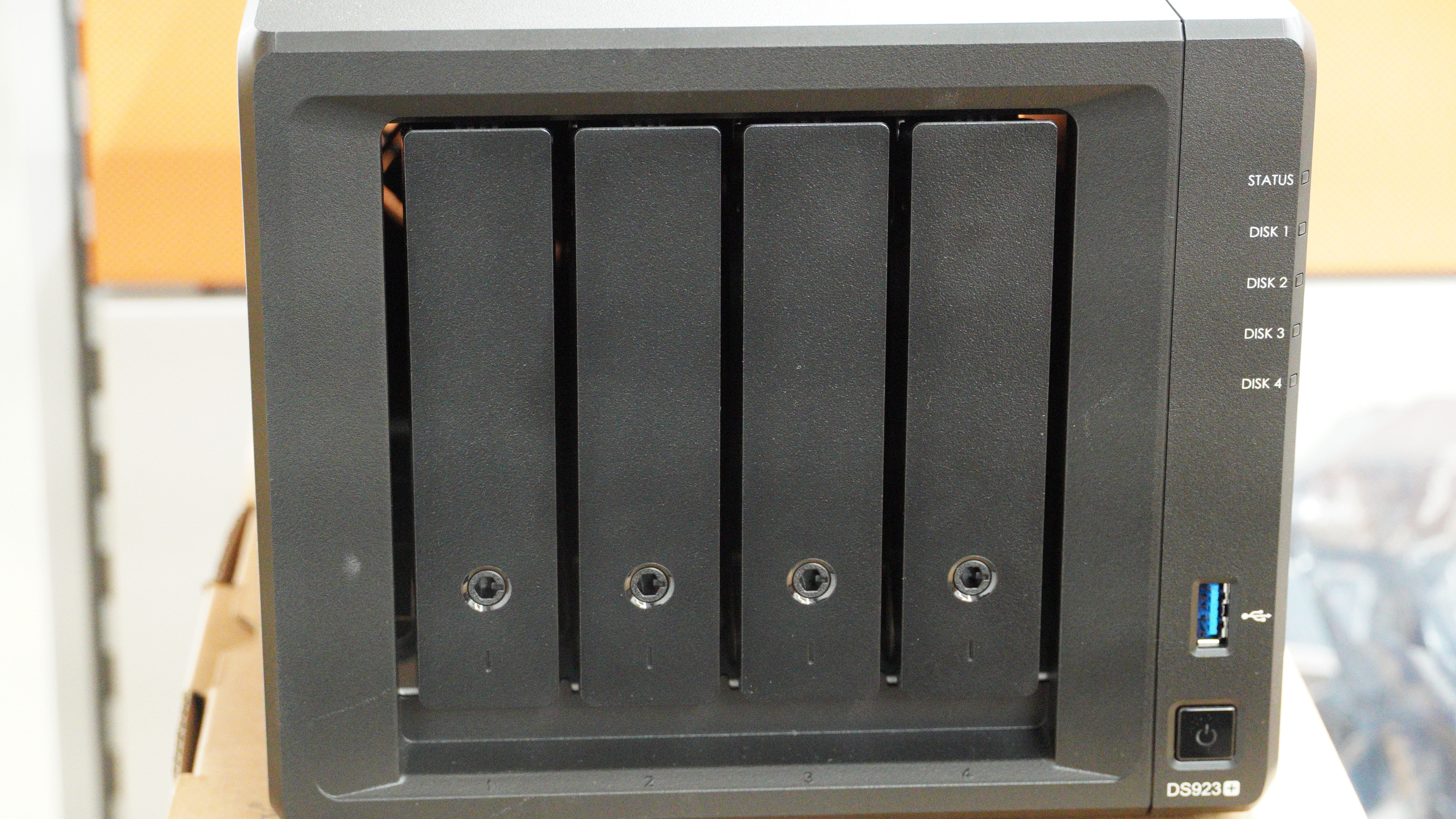 - 하드웨어 설치 : 먼저, 사무실의 네트워크 환경을 확인한 후 DS923+를 적절한 위치에 설치했습니다. 사무실 공간이 크지 않기 때문에 방해가 되지 않는 곳에 배치하는 것이 중요합니다. DS923+는 소형 디자인으로 공간 활용도가 뛰어나 서랍장 위에 적절한 위치를 선정해 설치할 수 있었습니다. 그리고 4개의 8TB HDD를 장착해 총 32TB의 저장 용량을 확보했고 RAID 5 구성을 선택해 일부 드라이브 오류 시에도 데이터가 보호될 수 있도록 설정했습니다. RAID 설정은 데이터 무결성을 유지하는 데 중요한 요소입니다.