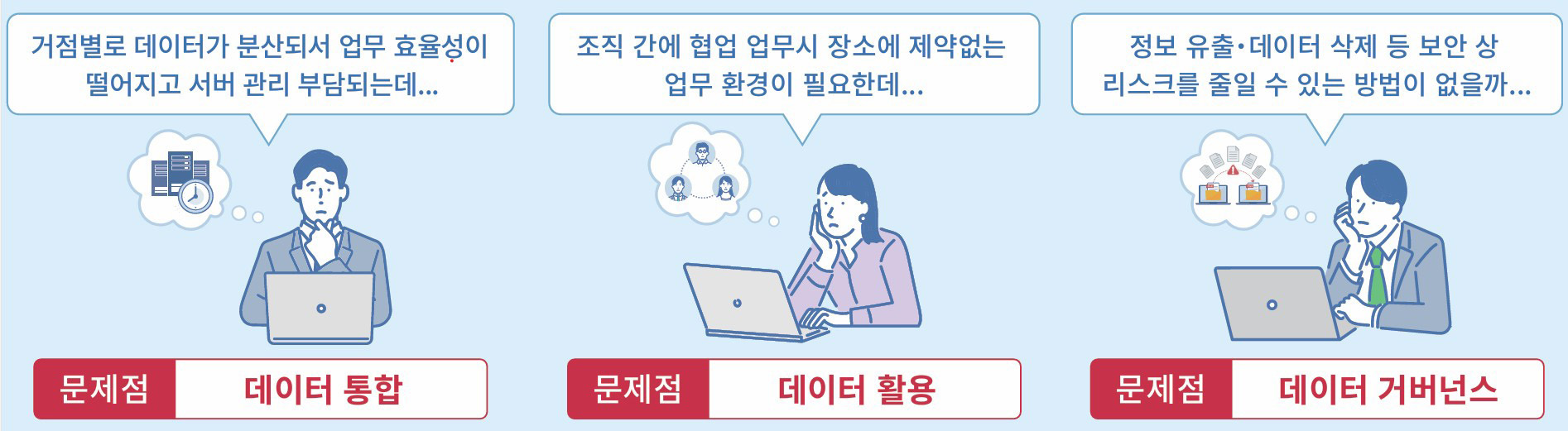 기업 내 데이터가 거점별로 분산되어 있을 경우, 업무 효율이 저하되고 서버 관리 부담이 커지는 문제가 발생해요. 또한 조직 간 협업 시에는 장소에 제약 없이 데이터를 주고받을 수 있는 환경이 필요하며 정보 유출이나 데이터 삭제와 같은 보안 리스크에 대한 우려도 존재합니다.