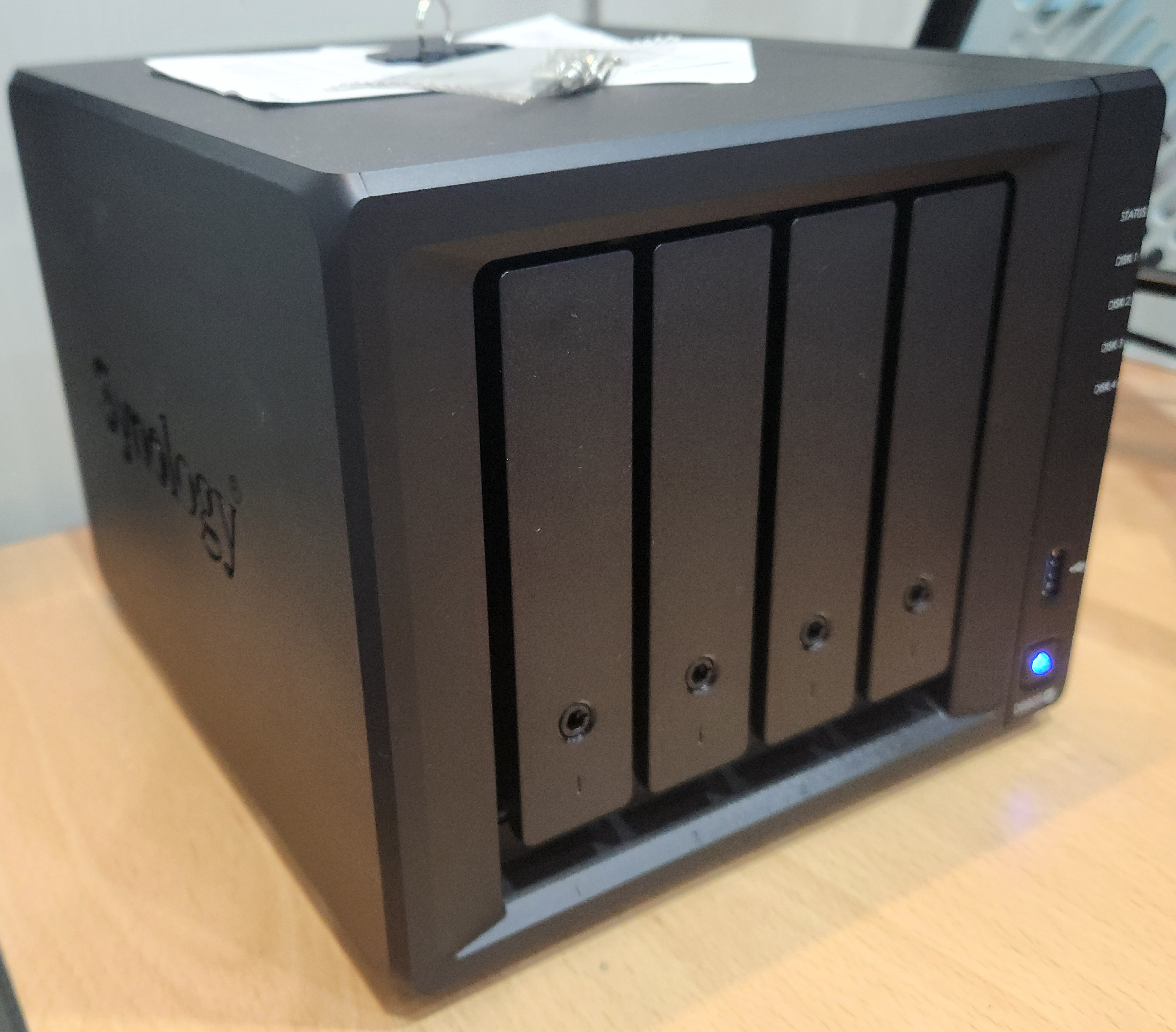 설치 당일, 사전 협의된 일정에 맞춰 학원 내 서버 설치 공간에 나스 본체와 HDD를 세팅했습니다. DS925+는 타워형으로 별도의 랙 없이도 쉽게 설치할 수 있기 때문에 학원처럼 IT 인프라가 단순한 장소에 적합해요. HDD는 시놀로지 인증 정품 모델로 전용 베이에 장착한 후 DS925+ 본체에 장착했습니다. 도구 없이도 HDD 장착이 가능한 구조라 설치 자체는 매우 간단하게 이루어집니다.