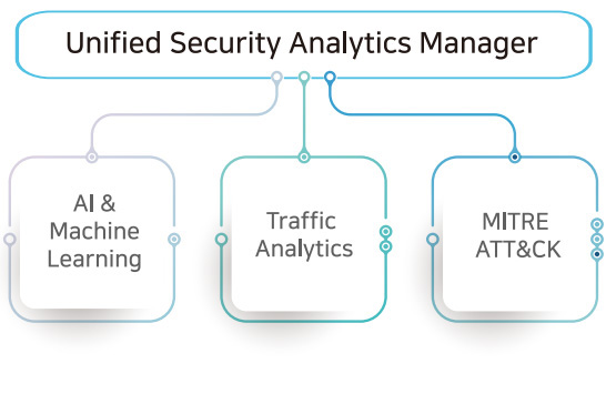 머신러닝 AI 기반 기술로 트래픽 내 위협을 실시간 탐지 및 대응할 수 있는 차세대 통합 보안 분석 시스템입니다. 네트워크 트래픽 정보와 위협 정보를 빅데이터로 저장 후 머신러닝/AI 기반의 고도화된 기술로 대비할 수 있습니다. SG 보안스위치와 연동하여 안전한 네트워크 환경을 제공합니다.