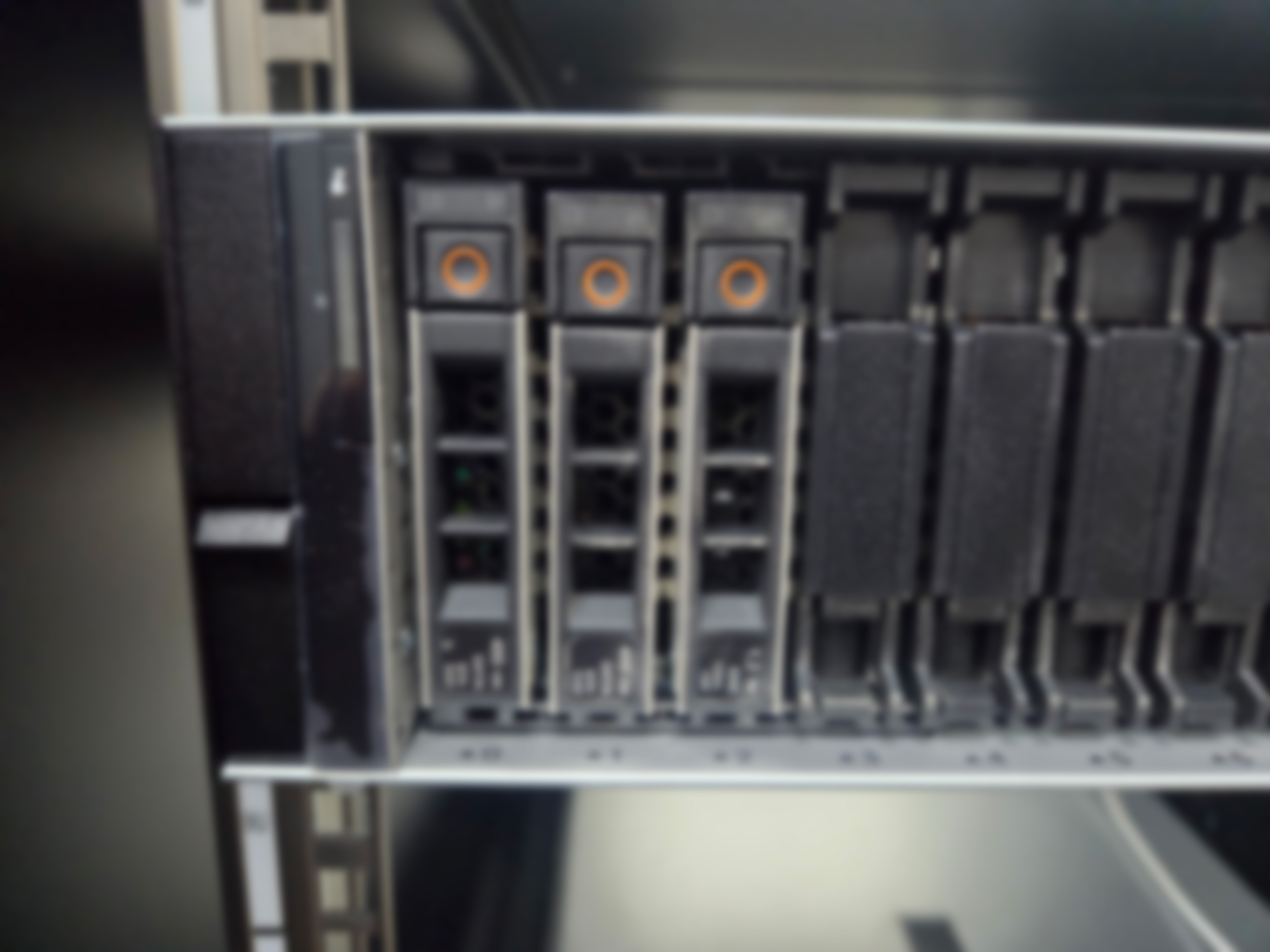 고객사의 R740 서버는 총 3대입니다. 각 서버에는 Intel Xeon Silver 4314(16코어) 프로세서 2개씩 총 24개 DDR4 64GB RDIMM(총 1.5TB 메모리), NVMe SSD 4대+2.5 SSD 8대 구성으로 하드웨어가 구성되어 있어요.