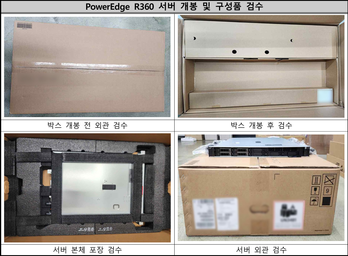 제품 입고 즉시, 담당 엔지니어는 R360의 신규 입고를 확인하고 외관 상태와 모든 구성품의 수량을 꼼꼼하게 검수했어요. Server의 핵심인 PERCH755 RAID 컨트롤러의 정상적인 인식을 확인한 후 고객사의 데이터 보호 요구에 맞춰 디스크를 RAID 5로 구성하는 작업을 진행했습니다. 이어서 OS 이미지를 설치하고 최신 보안 및 기능 업데이트를 완료했으며 모든 드라이브를 확인하고 설치한 뒤, 드라이버 상태가 정상임을 최종적으로 확인하여 현장 설치 전 최적의 상태를 준비했습니다.