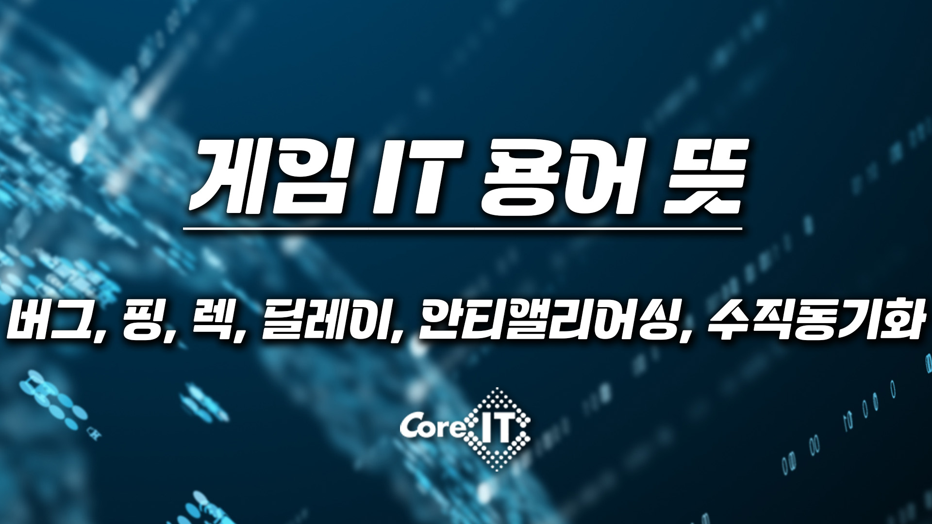 안녕하세요. 코아아이티입니다. 우리는 게임을 할 때도 IT 용어를 쉽게 접할 수 있지만 정확한 뜻을 모르는 경우가 많아요. 이번에는 게임 내에서 볼 수 있는 IT 용어인 버그, 핑, 렉, 딜레이, 안티앨리어싱, 수직동기화에 대해 알아보도록 하겠습니다.