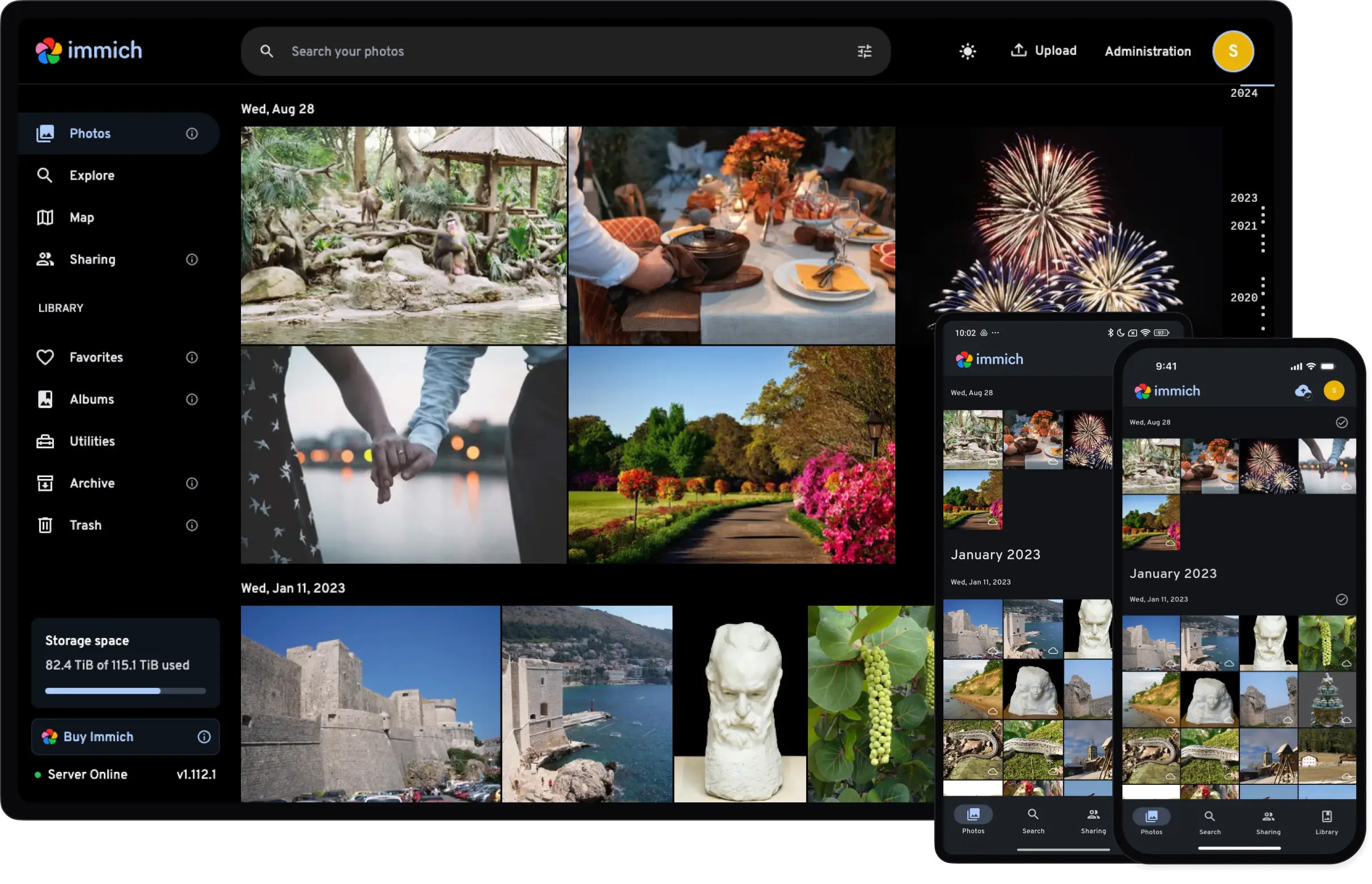 Immich가 주목받는 가장 큰 이유는 사진을 빠르게 보여주는 것에 초점을 맞춘 구조입니다. 타임라인 중심의 UI, 모바일 앱 지원, 원본 화질 기준의 이미지 뷰잉 등 사진을 소비하는 경험 자체에 집중한 설계가 특징입니다. 특히 커뮤니티에서 긍정적으로 평가되는 부분은 외부 라이브러리 기능입니다.