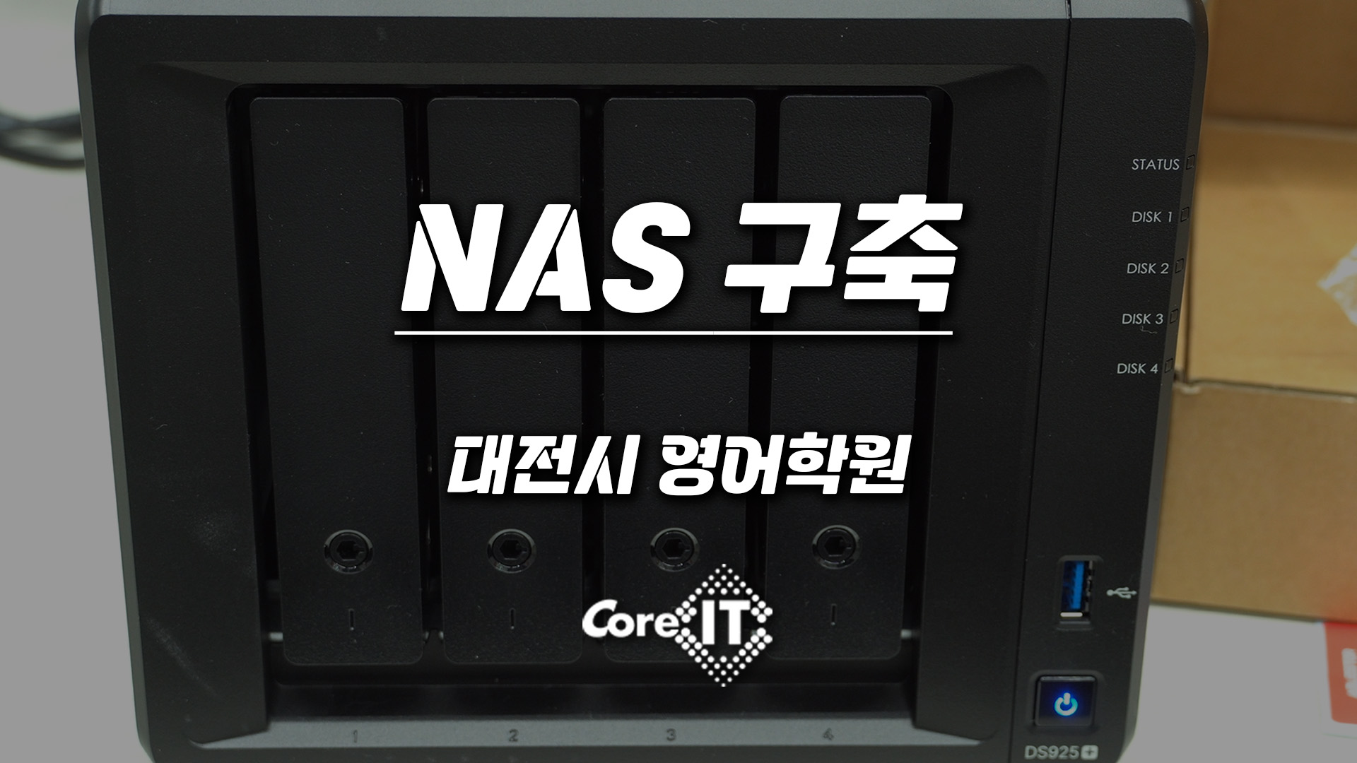 안녕하세요. 시놀로지 공식 파트너 코아아이티입니다. 저희는 일반 사무실과 같은 소규모부터 기업 데이터 센터까지 기업 환경을 반영한 최적화된 맞춤 네트워크 인프라를 제공해 드리고 있는데요. 이번에는 대전에 위치한 영어학원에 시놀로지 NAS인 DS925+를 구축한 사례를 소개하겠습니다.