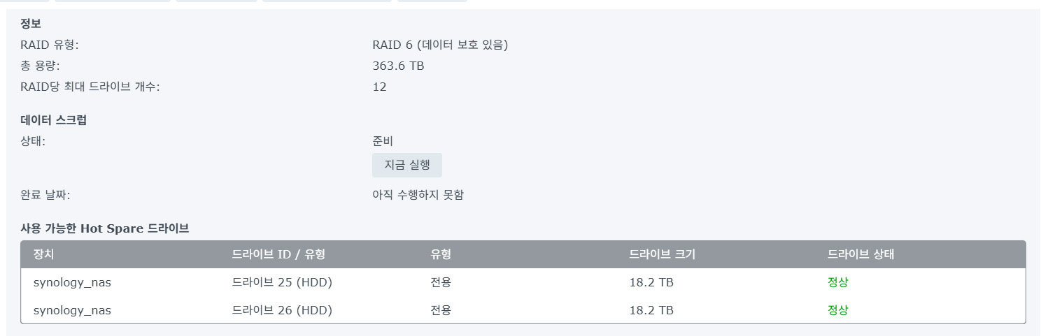 | 시놀로지 NAS, 대전 평생교육원 DS1525+ 2대 구축/설치 사례 (0) | 2026.03.03 |