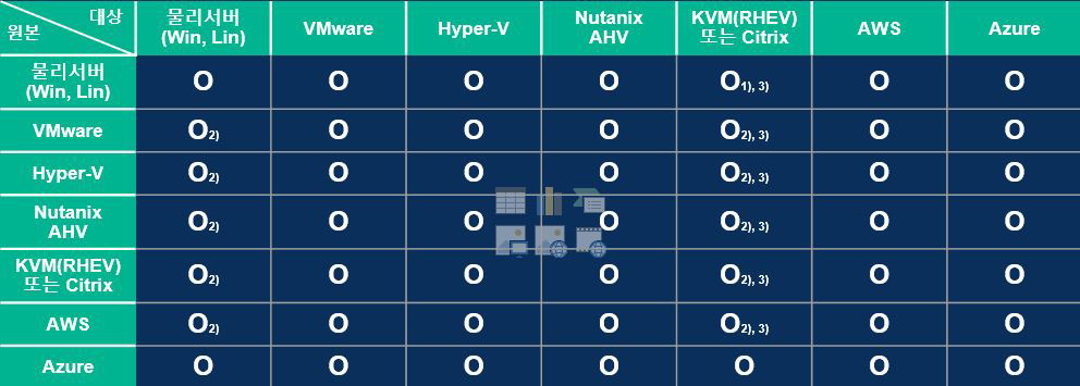 OS, DB 통합 백업 및 복구, Agentless 기반 DB 백업, 손쉬운 DB 복구, 이기종 환경으로 마이그레이션
