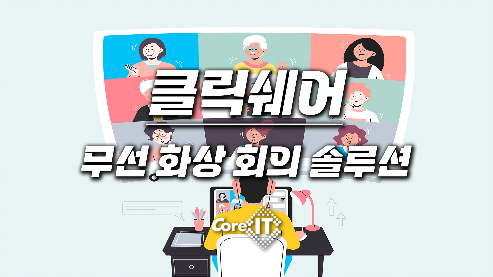 무선 회의 환경 클릭쉐어 제품 솔루션 또는 코아아이티에서 제공하는 IT 솔루션에 대해
