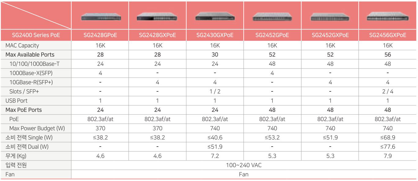 - SDN(Netconf/Yang) 지원(SG2400 Series)