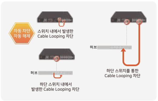 - Cable Looping 발생 포트 자동 차단 및 원인 제거 시 자동 해제