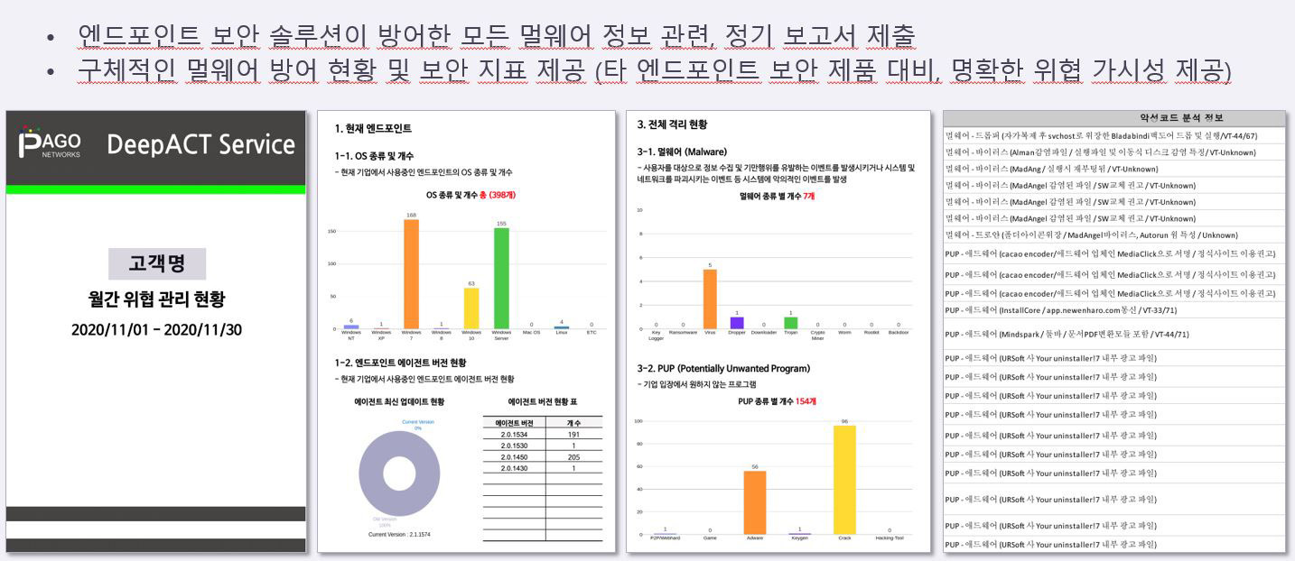 PAGO DeepACT는 파고네트웍스가 직접 개발한 MDR(Managed Detection & Response) 서비스 브랜드이며, 파고네트웍스가 제공하는 AI 기반 보안 솔루션과 함께 모든 고객사를 대상으로 '지능형 위협 탐지 및 대응 서비스'를 제공합니다.