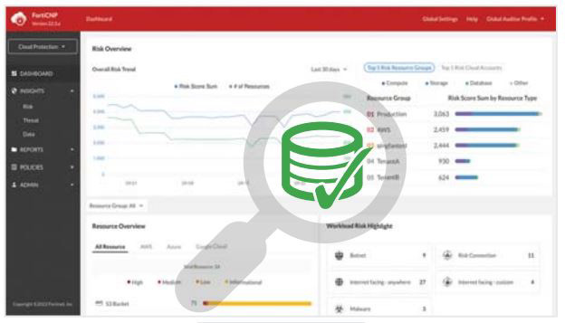 퍼블릭 클라우드에서 발생하는 사용자 워크로드 추적, 퍼블릭 스토리지에 저장되어 있는 소스코드 또는 파일에 대해 기어브이 위협요소가 있는지 추적 및 모니터링합니다. 그리고 포티넷의 검증된 시그니처 DB를 기반으로 퍼블릭 클라우드를 통해 공유될 수 있는 멀웨어 위협을 탐지하고 사전에 예방합니다.